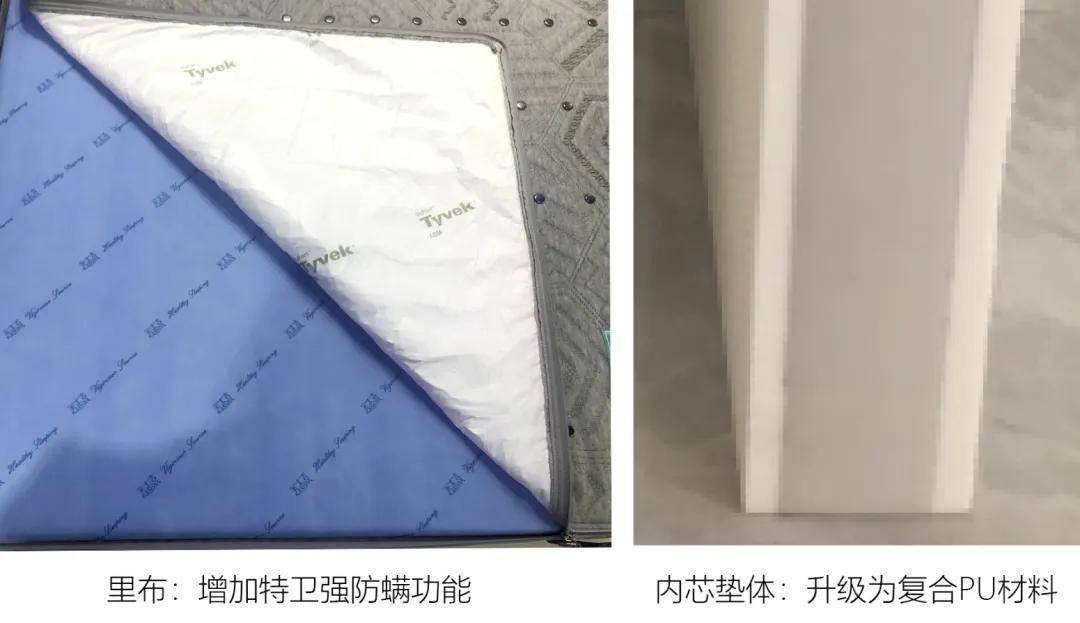 贵族床垫二代在里布中增加了特卫强防螨功能,抗菌防螨效果更显著,让床垫更卫生、更健康。